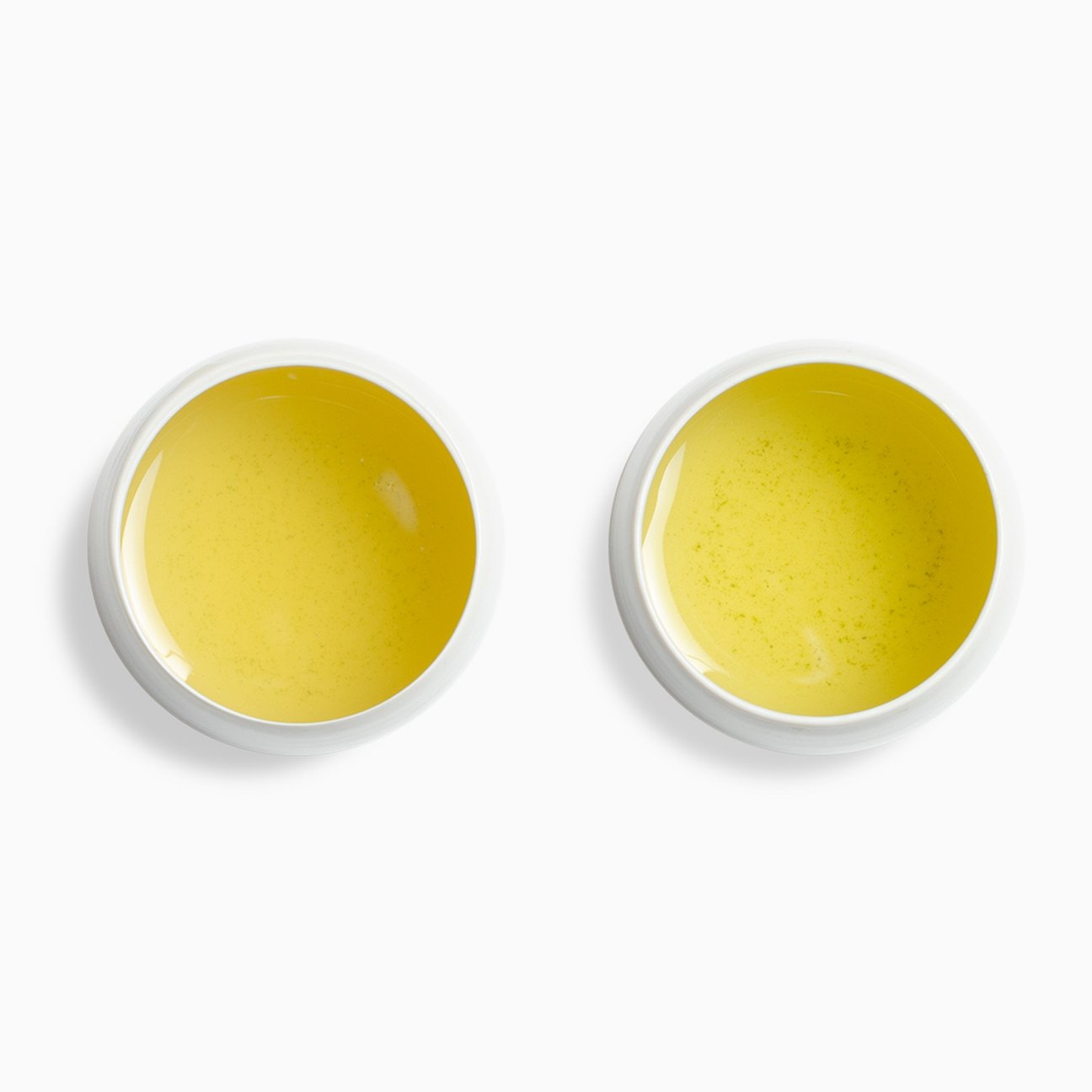 水色は透明な黄金色で、にごりが少ないのが特徴です。透明感のある水色がとても美しく、にごりのある深蒸しとは違った魅力があります。一煎目と二煎目の見た目はさほど変わらずとも、甘く香り高いのは一煎目。二煎目はすっきりとしてごくごくと飲めます。(写真左が一煎目。右が二煎目。)