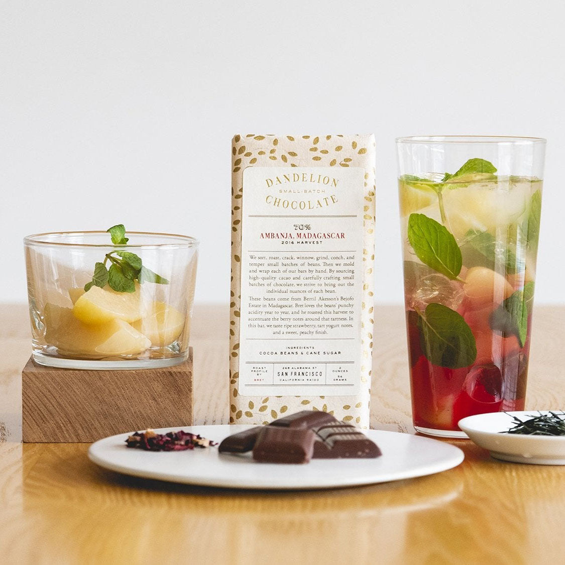 フルーツとの相性が抜群です。おすすめは、桃を使ったノンアルコールモヒート。『002 香駿』を使ったモクテルはハイビスカスのシロップを使っていて、甘味と酸味のバランスが良いので、残暑厳しい今の時期にはたまりません。ペアリングをするなら酸味の効いたチョコレートが◎