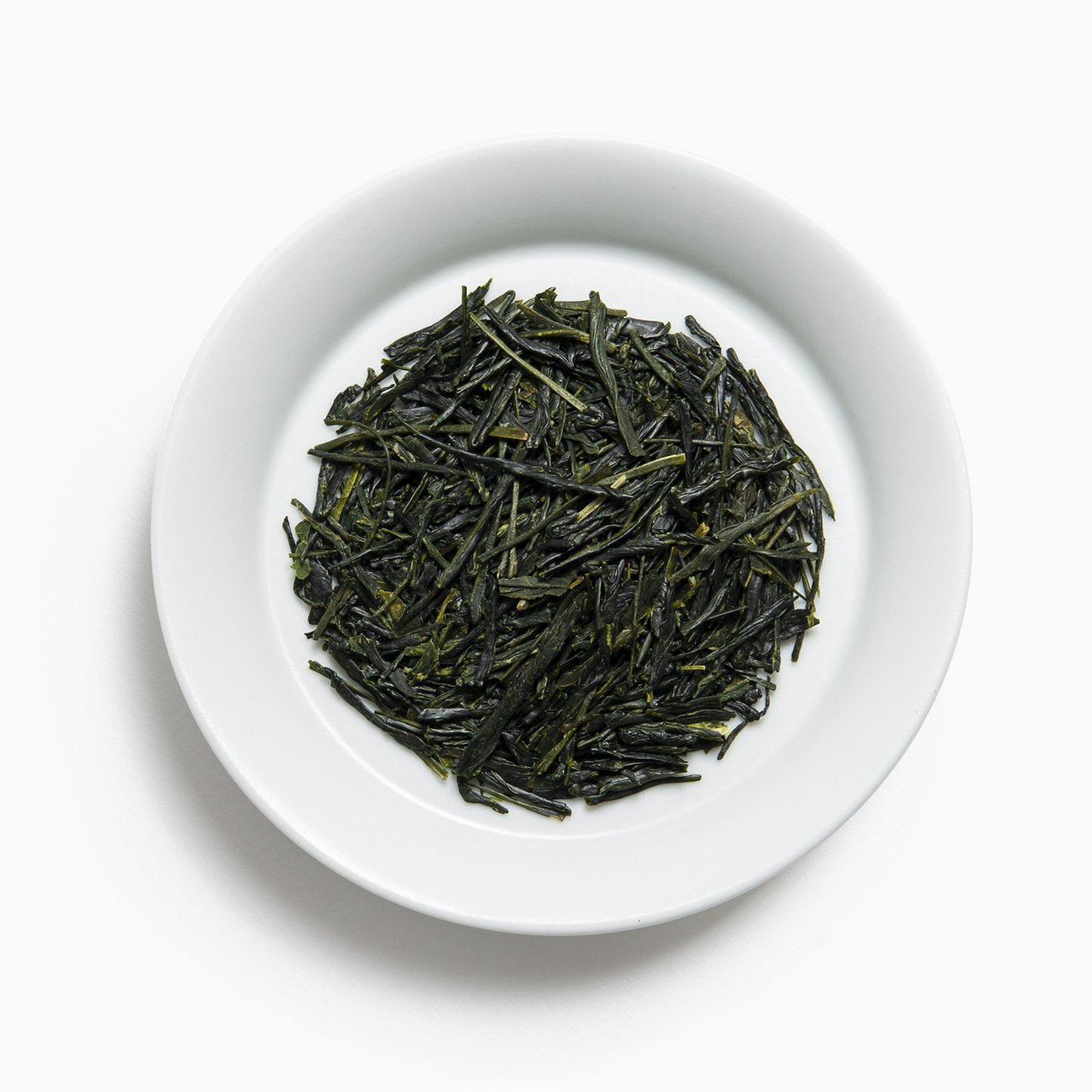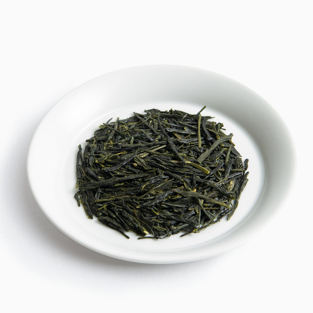 つやつやとした濃緑が美しく光ります。針のようにピンと伸びた浅蒸しです。一本一本が潰れずに丸い断面になるように撚られた茶葉は見事!ここまで美しい茶葉を製造することができる農家はごく稀で、完成度が非常に高いです。